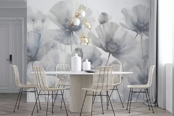 Тапете за зид Деликатне текстурне грунге сиво и бело цвеће са меким, замућеним латицама на белој позадини бр. w08526
