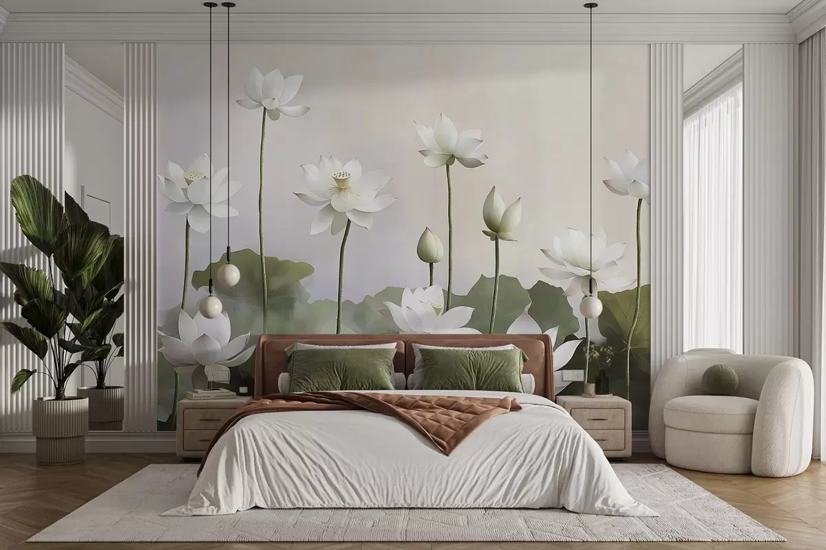 Тапете за зид Бели нежни цветови лотоса бр. w08596