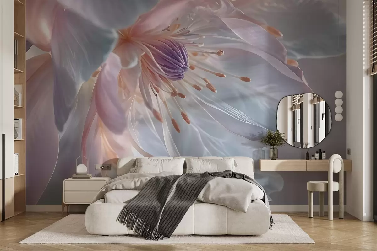 wall murals Крупни план деликатног цвета пастелне боје са меким, провидним латицама и живописним средиштем w08605