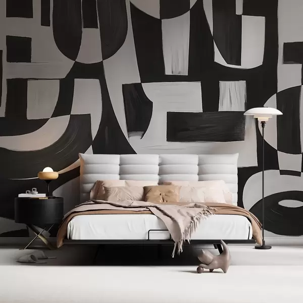 Тапете за зид Апстрактни црно-бели геометријски облици и узорци, стварајући визуелно упечатљиву и динамичну композицију бр. w08608