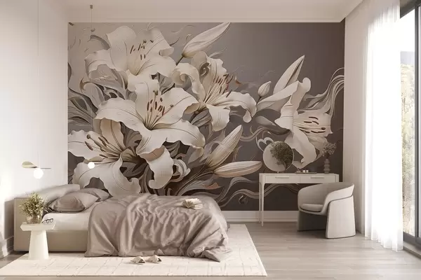 Тапете за зид Софистицирани бели љиљани у пастелним тоновима бр. w08633v1