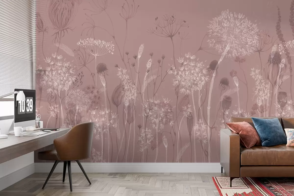 Тапете за зид Ваздушни маслачак и дивље цвеће у акварел стилу у ружичастим тоновима бр. w08637v1
