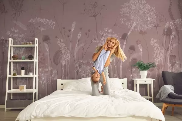 Тапете за зид Ваздушни маслачак и дивље цвеће у акварел стилу у ружичастим тоновима бр. w08637v1