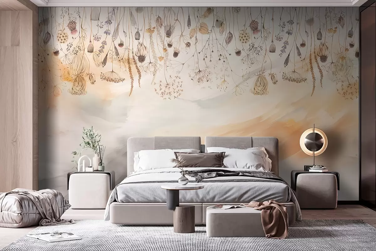Тапете за зид Дивље цвеће у стилу акварела у пастелним тоновима на позадини потеза четкицом бр. w08681