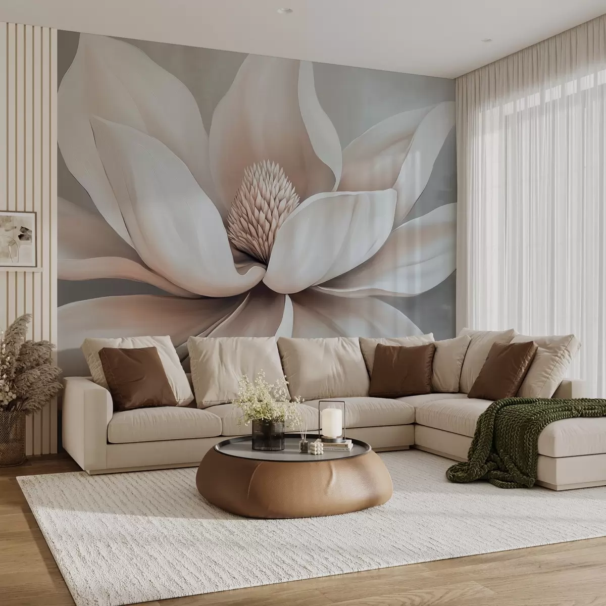 wall murals Елегантан цвет магнолије са дугим, глатким латицама на меко сивој позадини w08705