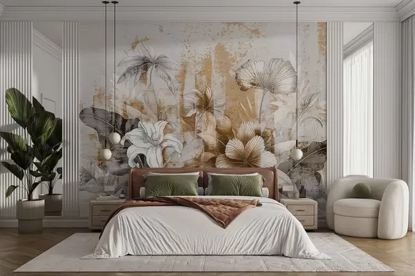Тапете за зид Винтаге дизајн са егзотичним цвећем и биљкама бр. w08767
