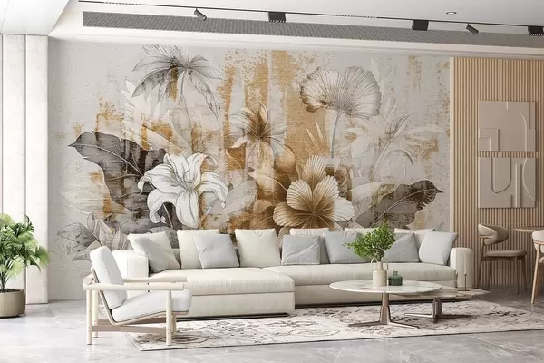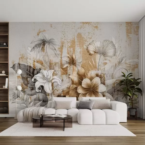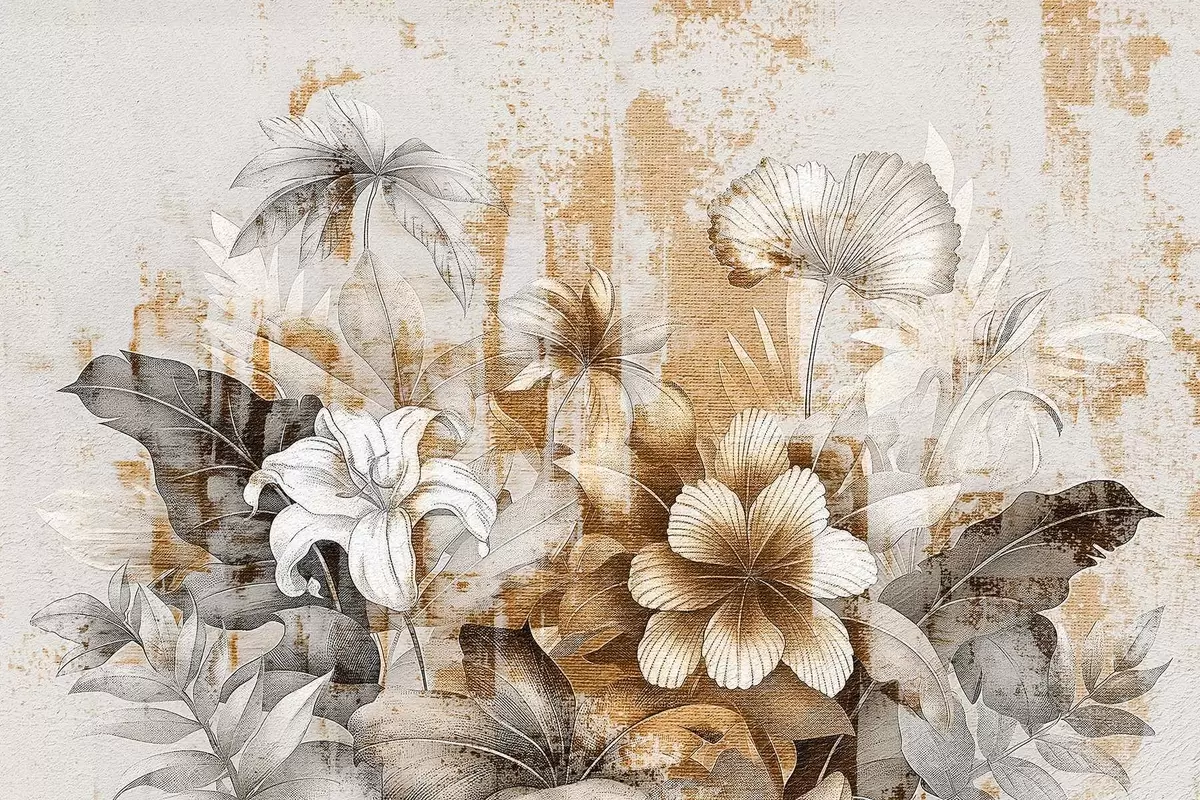 Тапете за зид Винтаге дизајн са егзотичним цвећем и биљкама бр. w08767