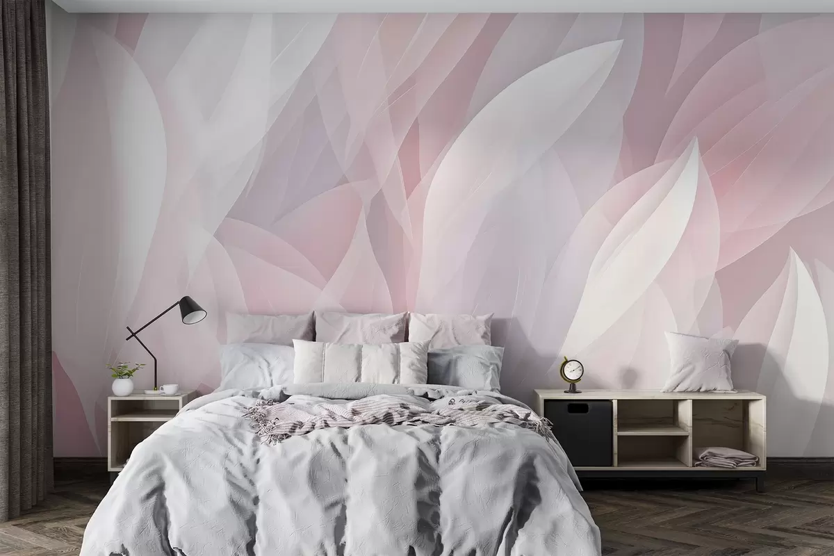 Тапете за зид Апстрактни дизајн са меким облицима налик на латице у нијансама ружичасте и беле, стварајући слојевит ефекат бр. w08774