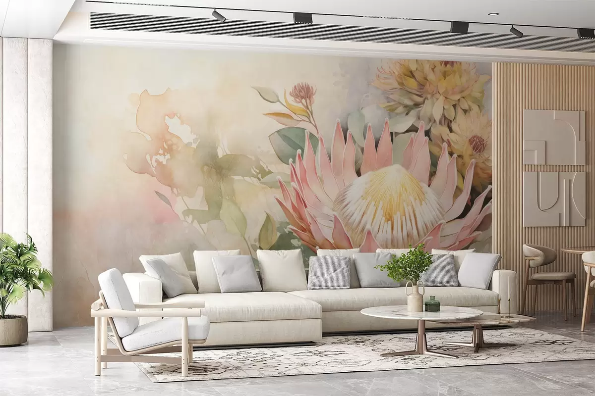 Тапете за зид Имитација акварела, велико тропско цвеће бр. w08796