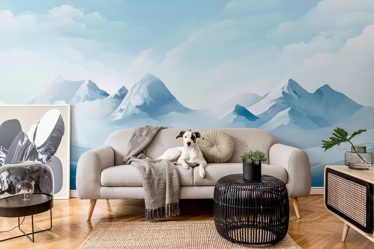 Тапете за зид Минималистички плави облаци и планине, ледено време бр. w08811
