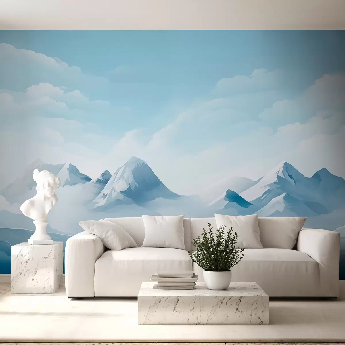 wall murals Минималистички плави облаци и планине, ледено време w08811