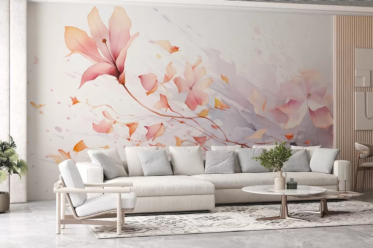 Тапете за зид Цвет са падајућим латицама лепрша на ветру у стилу акварела бр. w08821