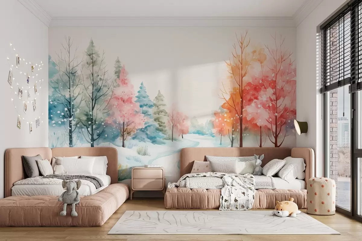 Тапете за зид Живахна зимска шума у стилу акварела бр. w08856