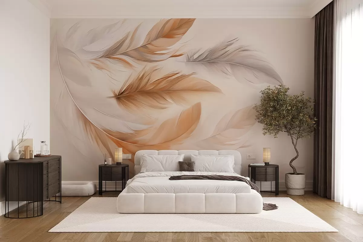 Тапете за зид Плутајуће прозрачно смеђе-сиво перје бр. w08968