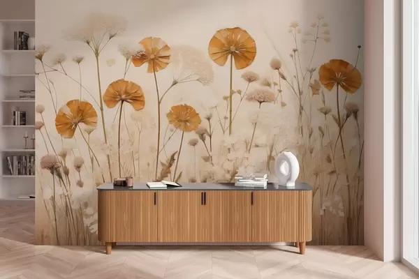 Тапете за зид Дивље цвеће са жутим нијансама у топлим тоновима бр. w08994