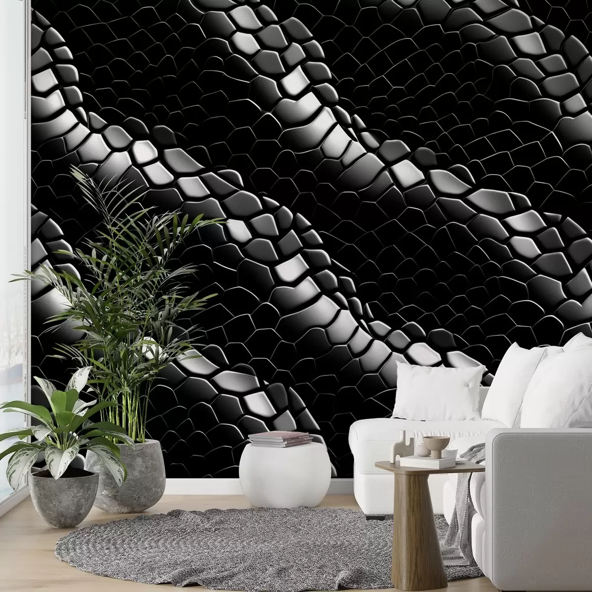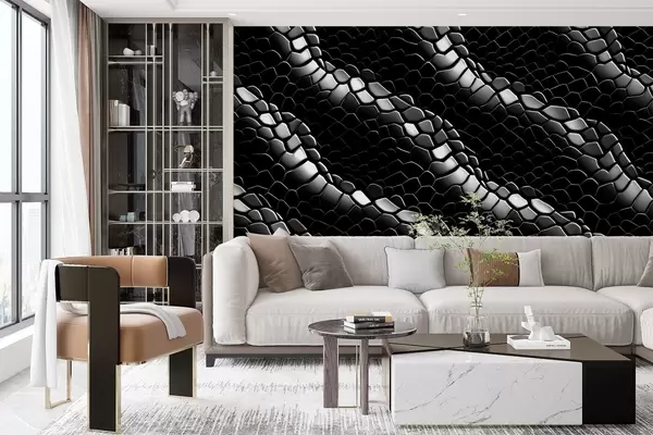 Тапете за зид Црно-бели таласи у текстури змијске коже бр. w08995