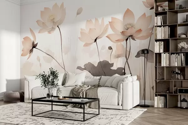 Тапете за зид Локвањи у деликатним светлим тоновима у стилу акварела бр. w09035
