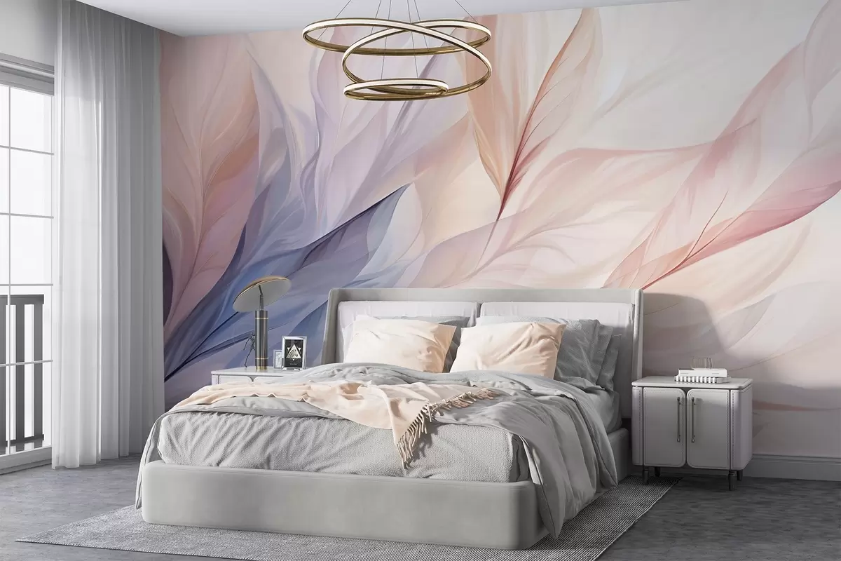 Тапете за зид Апстрактни цветни дизајн са лепршавим латицама у пастелним нијансама розе, брескве и плаве, стварајући меку и сањиву композицију бр. w09049