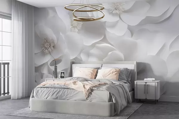 Тапете за зид Бели цветови са деликатним латицама, распоређени у густу грозд, стварају осећај чистоће и елеганције на белој позадини бр. w09053