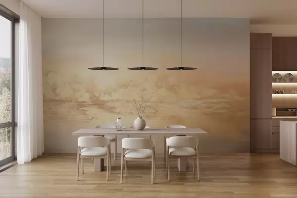 Тапете за зид Апстрактни текстурирани пејзаж са топлим бојама, меком и сањивом атмосфером и мешавином наранџастих, жутих и белих нијанси бр. w09063