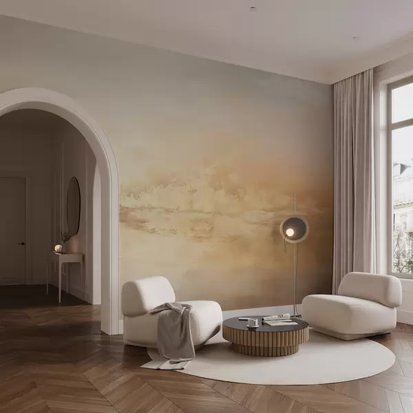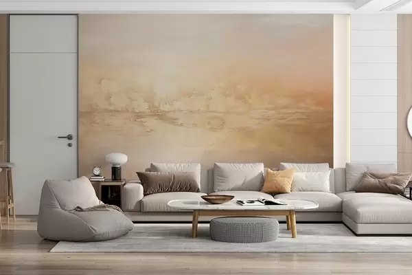 Тапете за зид Апстрактни текстурирани пејзаж са топлим бојама, меком и сањивом атмосфером и мешавином наранџастих, жутих и белих нијанси бр. w09063