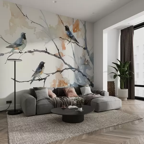 Тапете за зид Птице на гранама дрвећа у стилу акварела бр. w09064