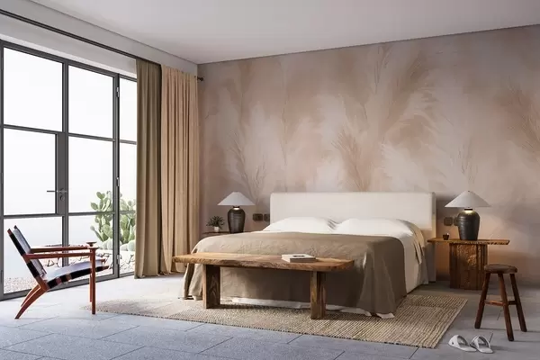 Тапете за зид Пампас трава у беж и розе тоновима бр. w09077