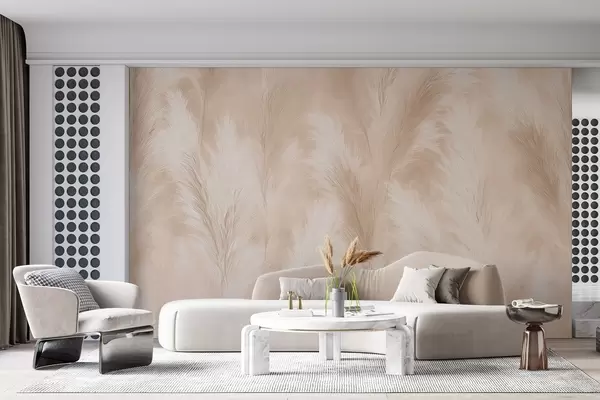 Тапете за зид Пампас трава у беж и розе тоновима бр. w09077