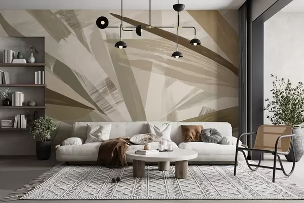 Тапете за зид Апстрактни листови у зеленим и беж тоновима бр. w09091