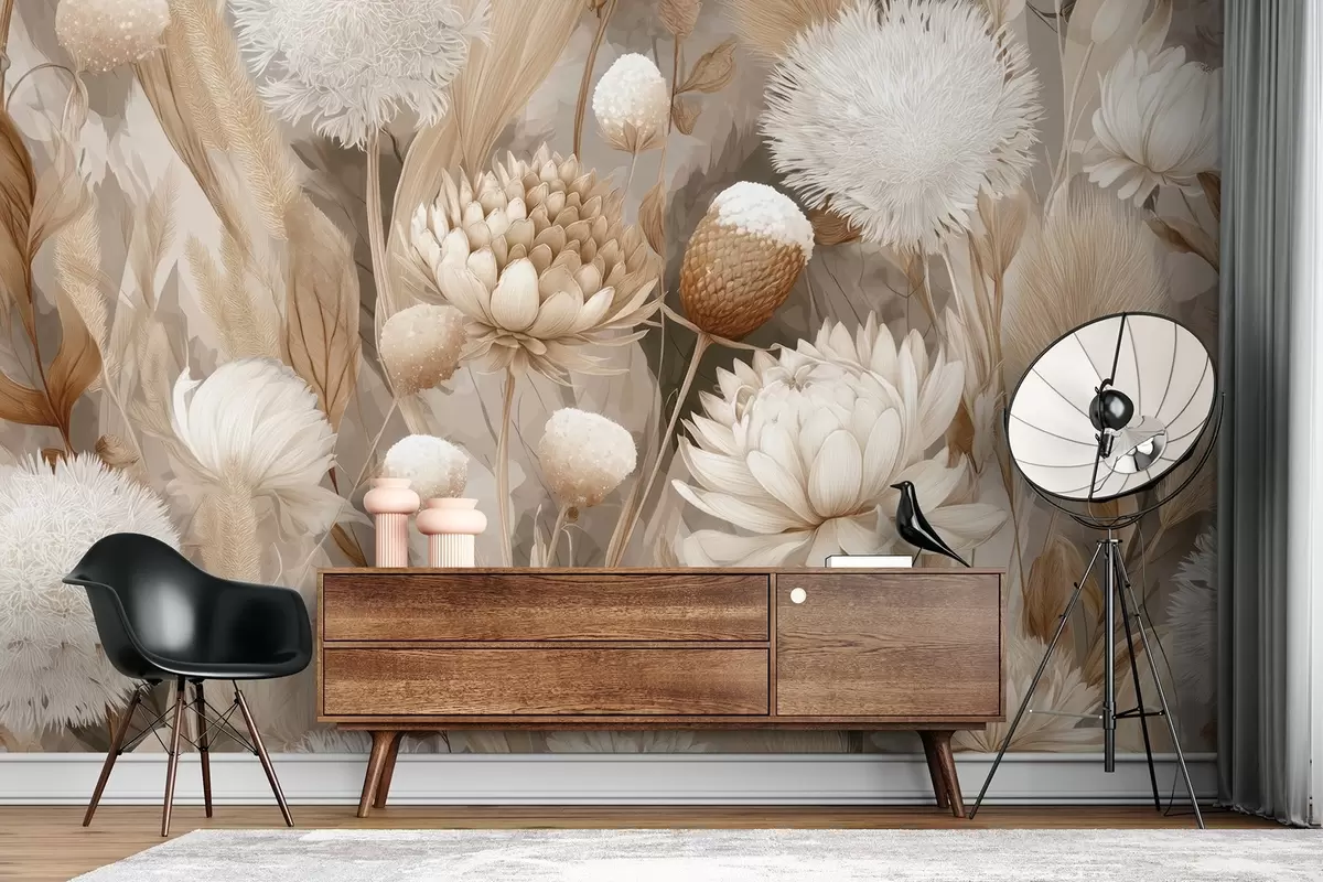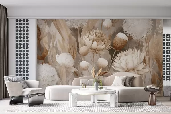 Тапете за зид Бохо хармонија: Текстурирано цвеће у беж и крем тоновима бр. w09121