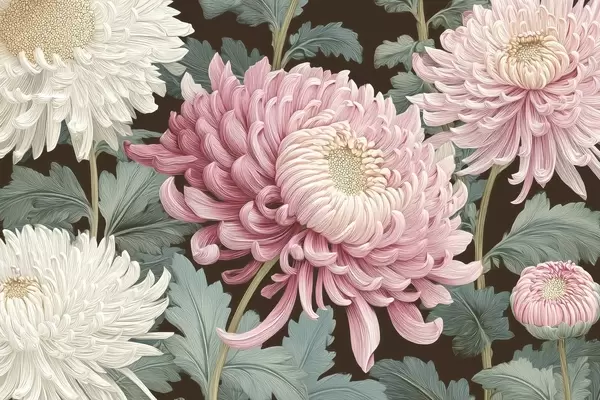 Тапете за зид Велике ружичасте и беле орхидеје са листовима на тамној позадини бр. w09125