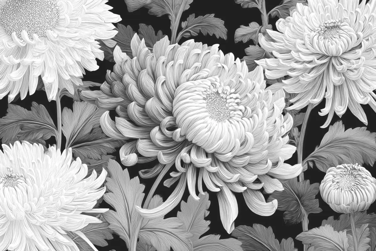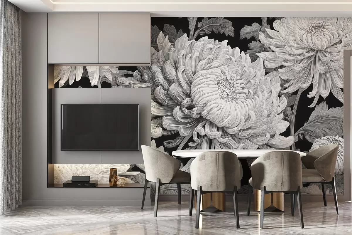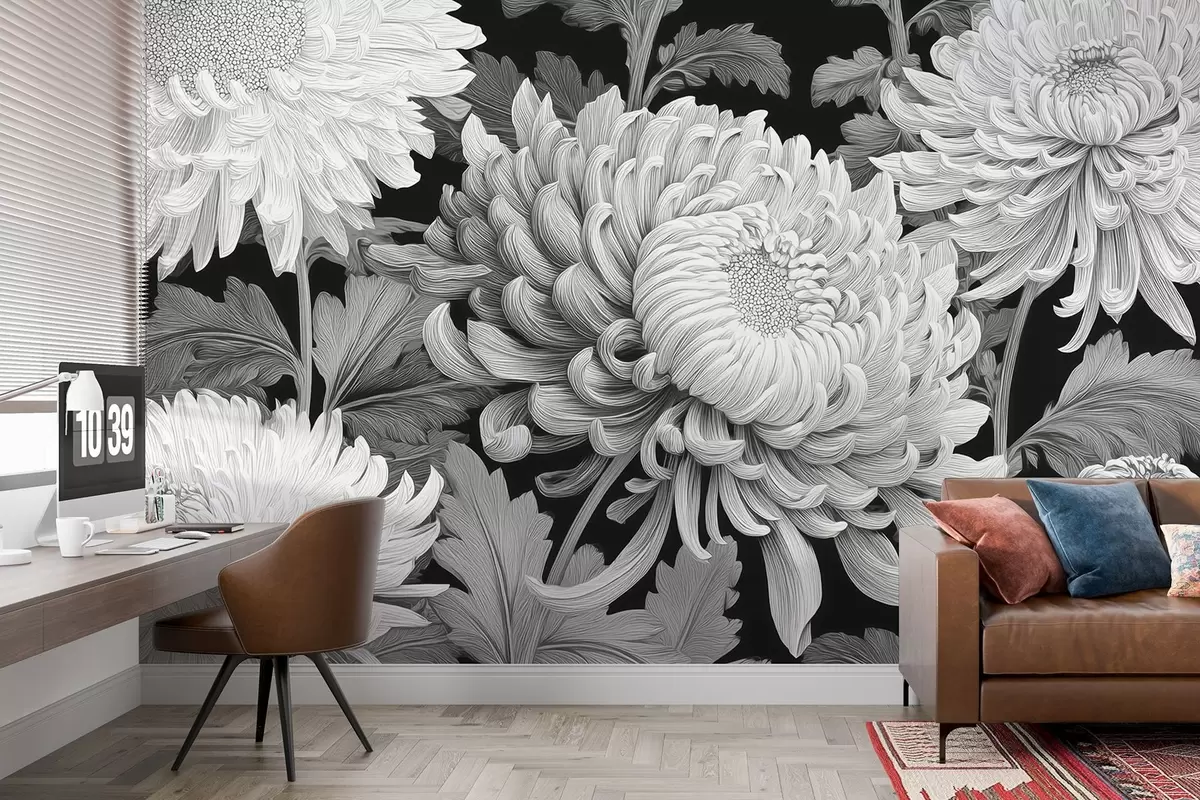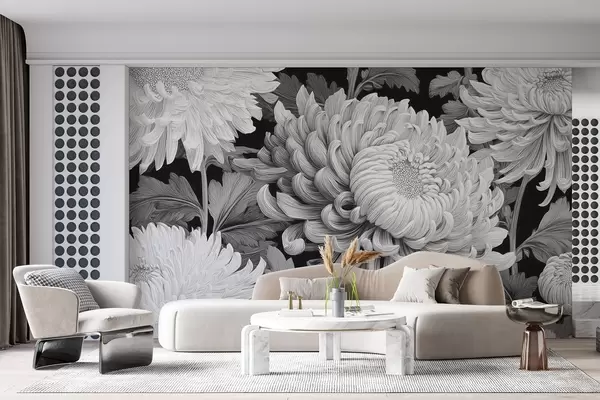 Тапете за зид Црно-беле велике орхидеје са листовима бр. w09125v1