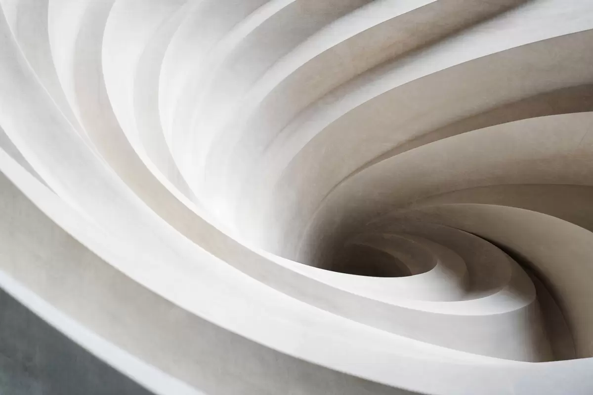 Тапете за зид Апстрактни текстурирани вртлог белих и беж слојева, стварајући ефекат вртлога, динамичну композицију, модеран минималистички дизајн бр. w09144