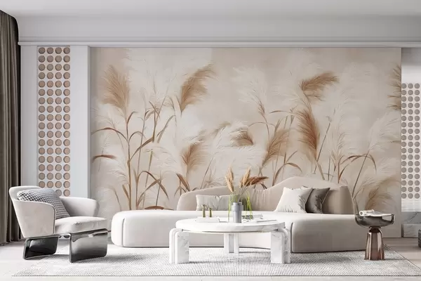 Тапете за зид Елегантна пампас трава цвета у меким беж и млечним тоновима бр. w09150v1