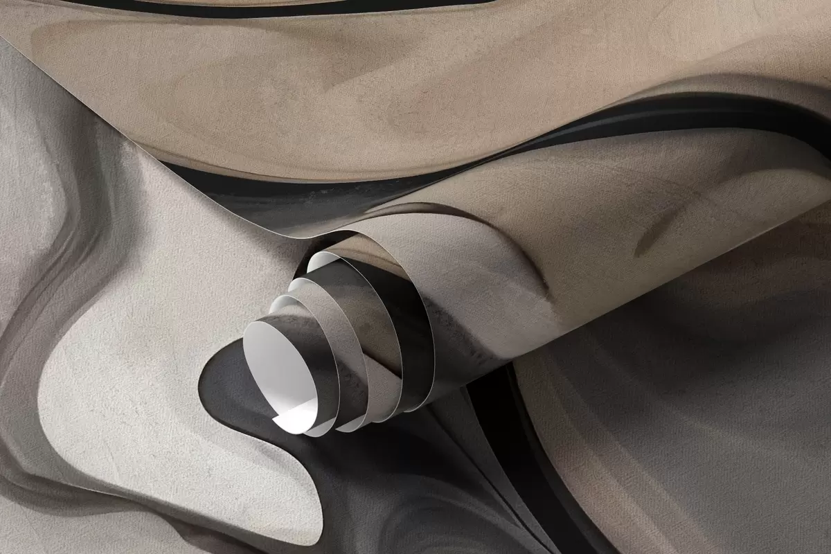 Тапете за зид Апстрактна флуидна текстурирана слика у нијансама црне, беле, сиве и беж имитације мермера бр. w09160