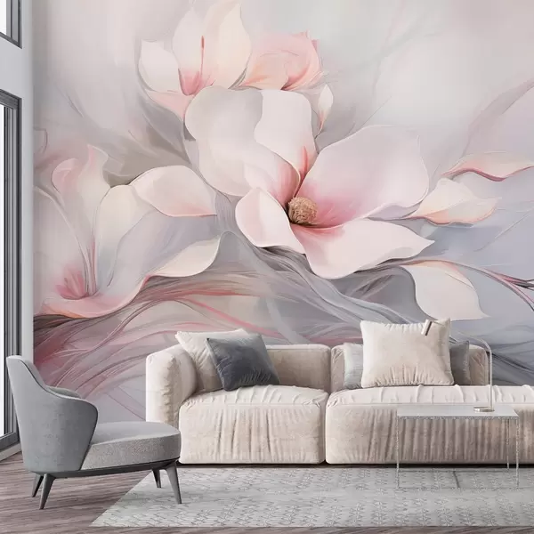 wall murals Нежни цветови магнолије са ружичастим латицама и белим листовима, глатке текстуре, течних линија w09165