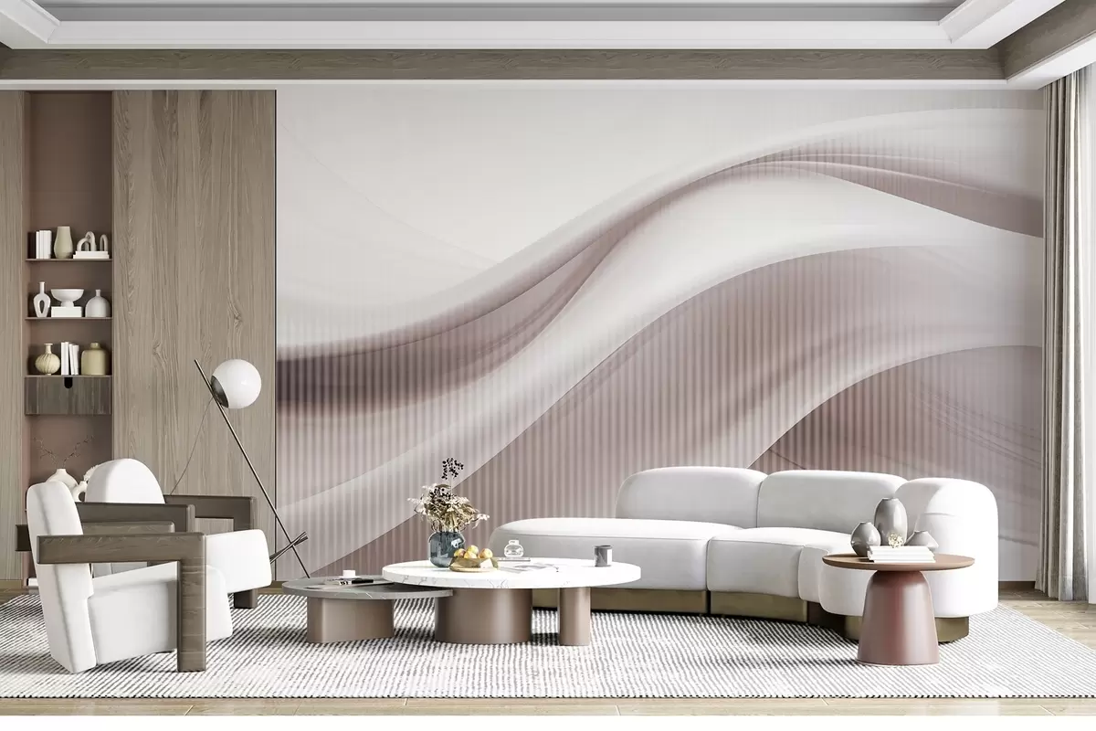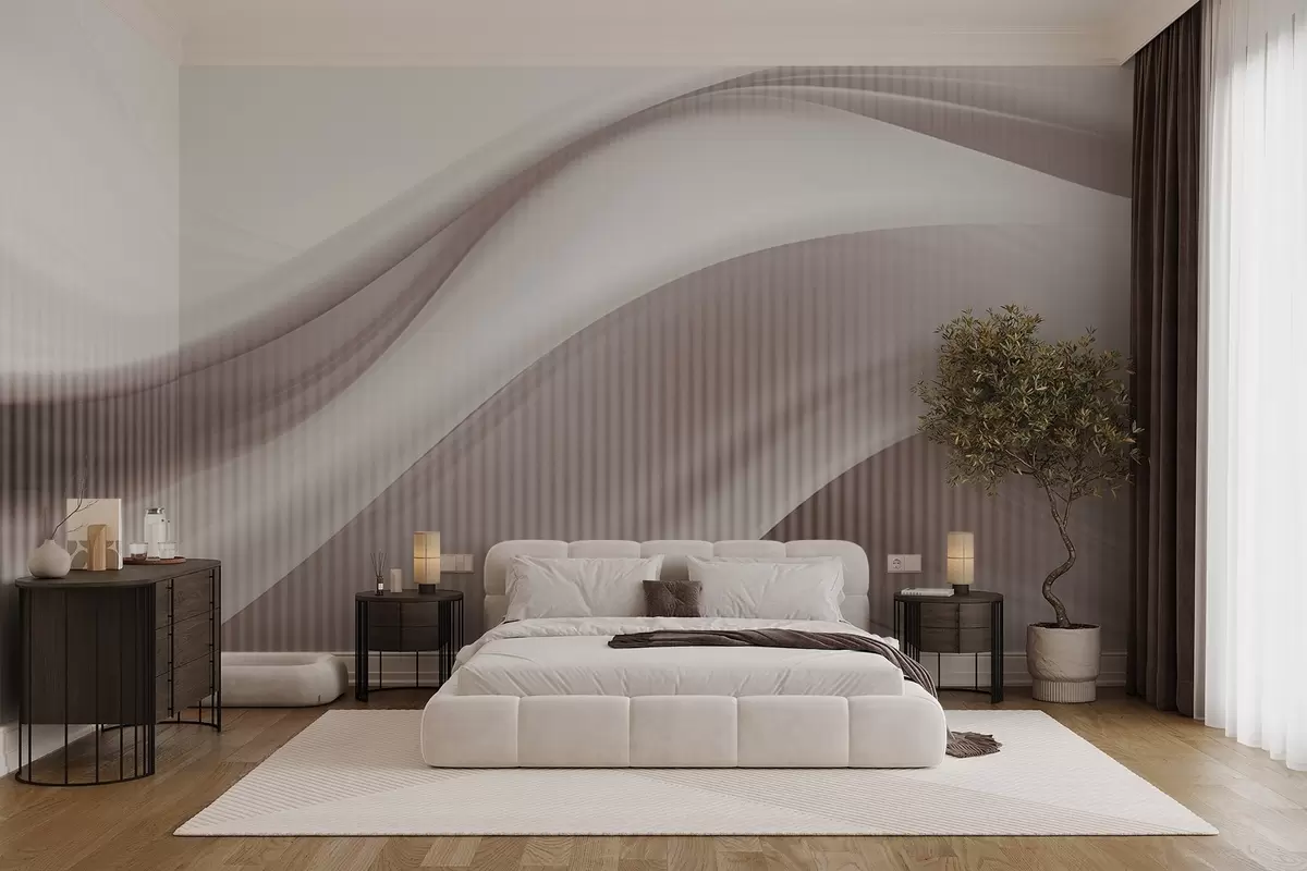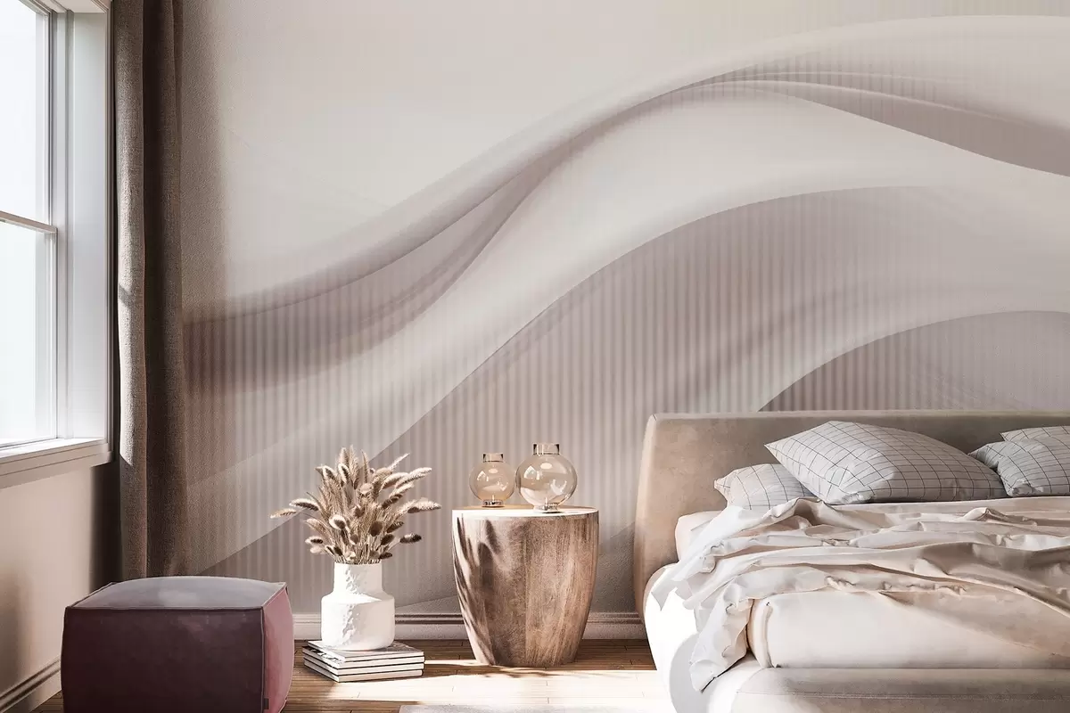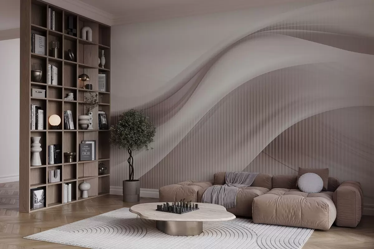 Тапете за зид Апстрактни принт са течним линијама и суптилним вертикалним пругама, стварајући осећај покрета и дубине, беж палета бр. w09189