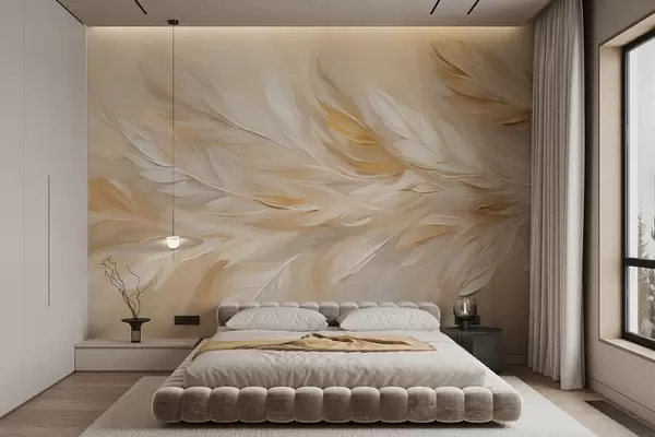 Тапете за зид Бело и беж перје распоређено у течном отиску, мека текстура, топла палета боја, апстрактна позадина бр. w09191