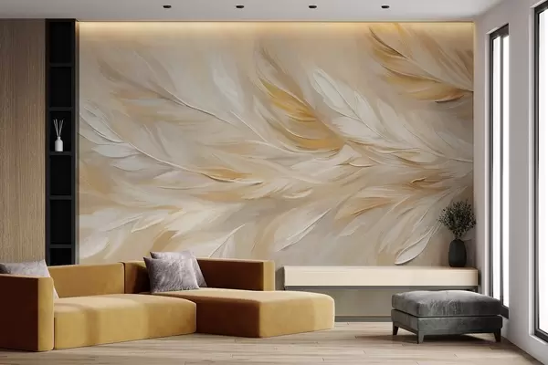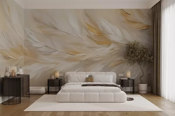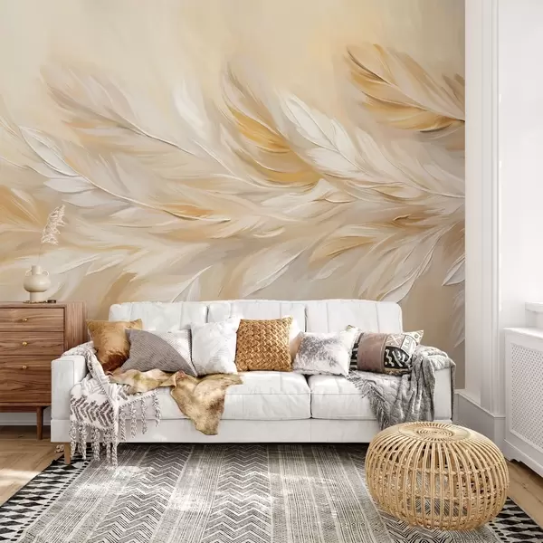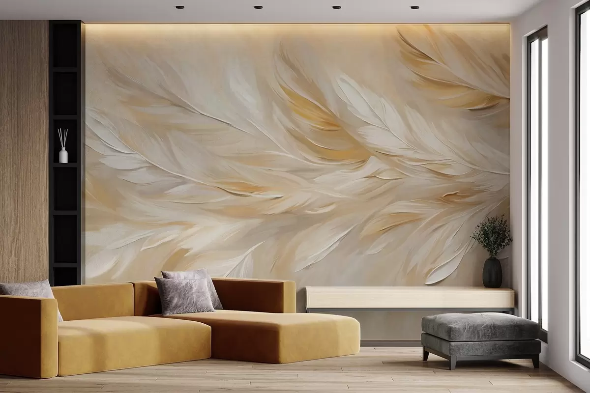 Тапете за зид Бело и беж перје распоређено у течном отиску, мека текстура, топла палета боја, апстрактна позадина бр. w09191