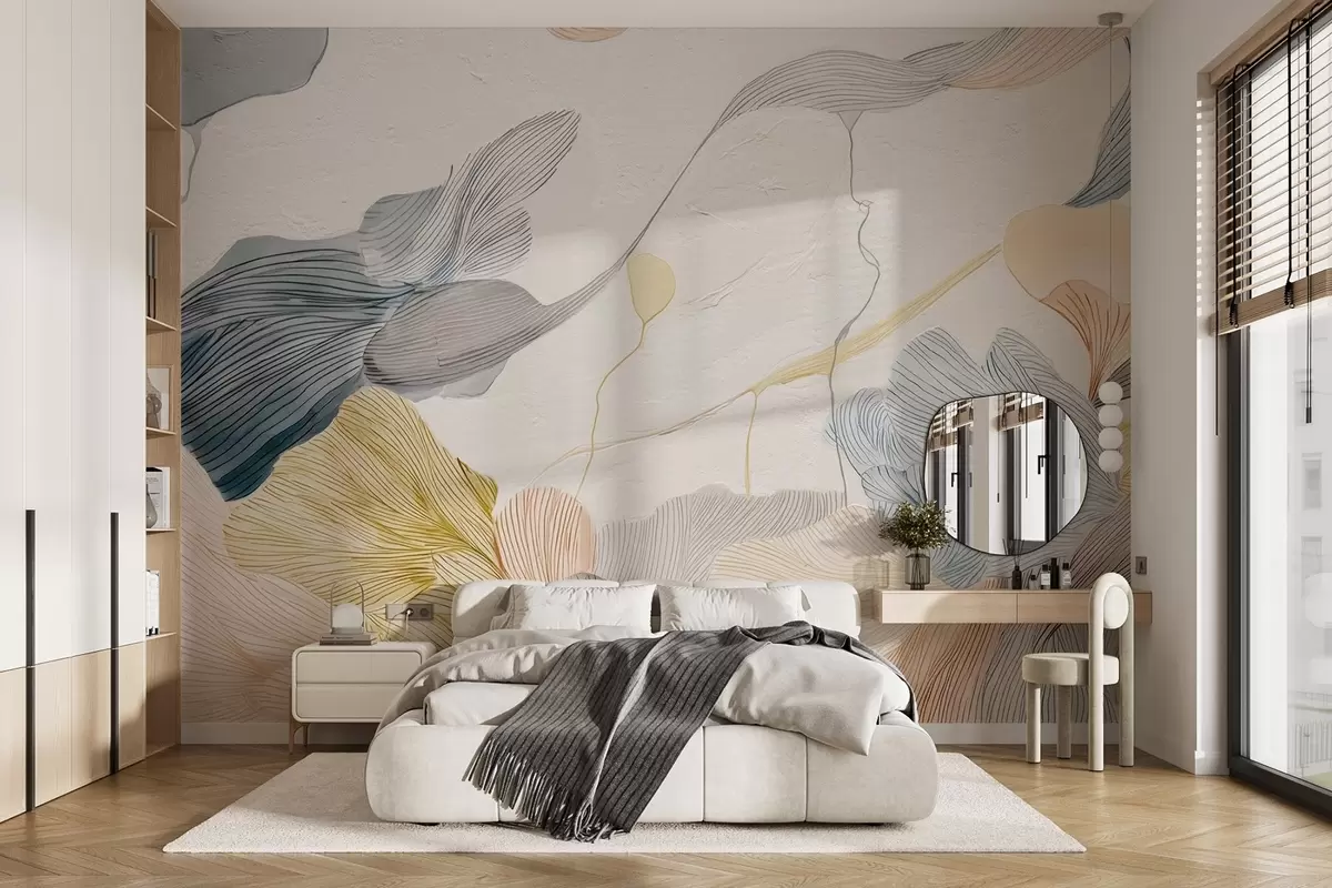 Тапете за зид Апстрактни графички листови у топлим и хладним пастелним тоновима бр. w09222v1