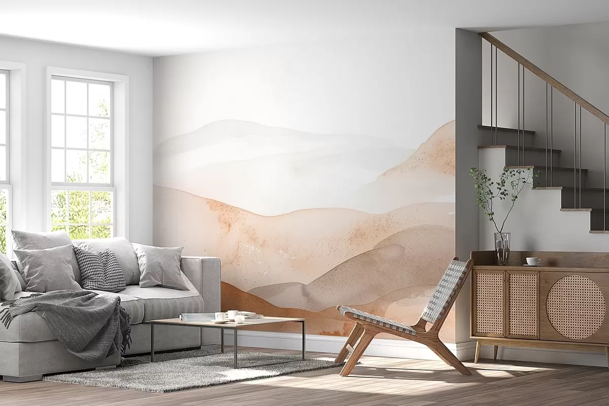 Тапете за зид Планине са ефектом брда у топлим тоновима акварела бр. w09223v1