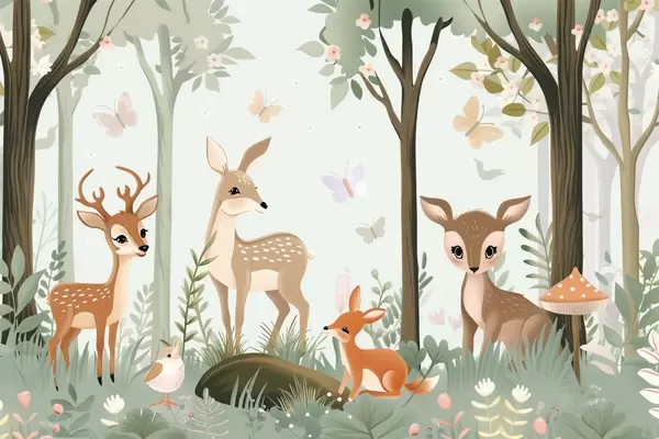 Тапете за зид Хировите шумске животиње у плавим тоновима бр. w09227v1