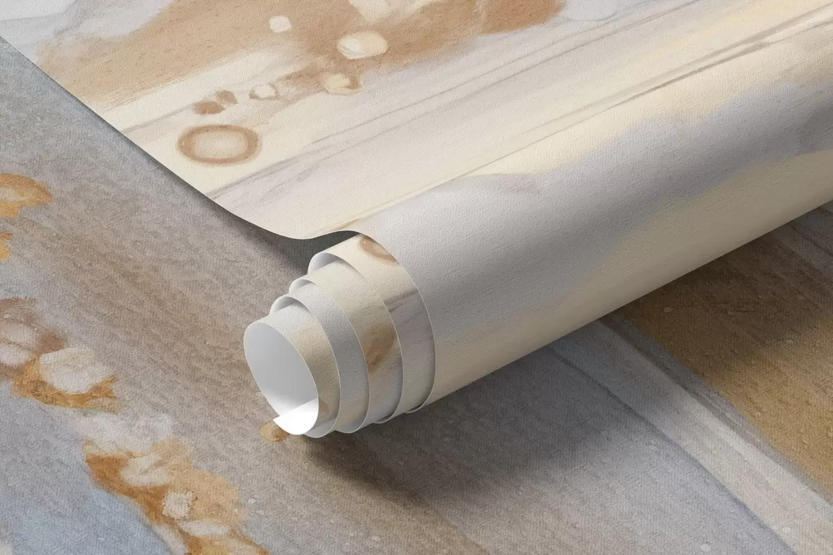 Тапете за зид Апстрактни текстурирани пејзажни океански таласи који се разбијају о пешчану плажу, меке пастелне боје, плаво небо са светлим облацима бр. w09234