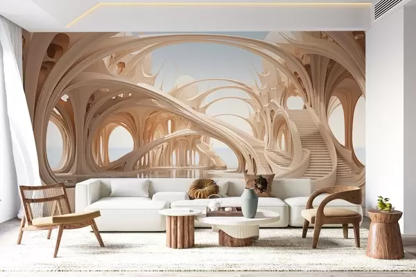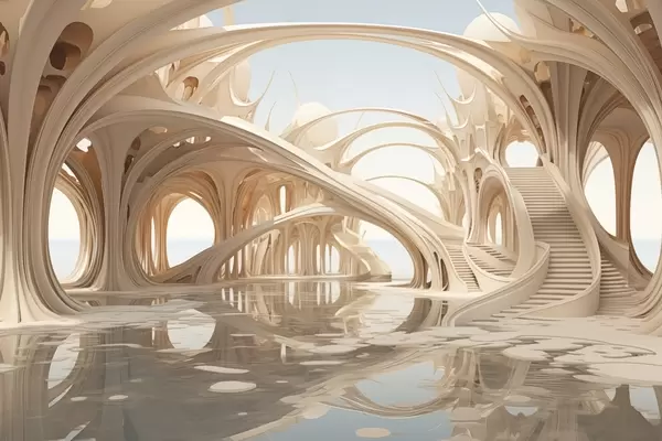 Тапете за зид Фантазијска архитектура са луковима изнад воде бр. w09241