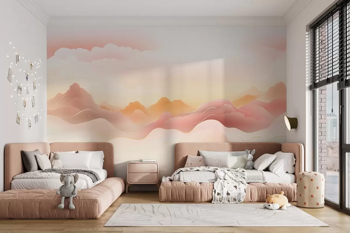 Тапете за зид Магловите планине под топлим изласком сунца бр. w09242