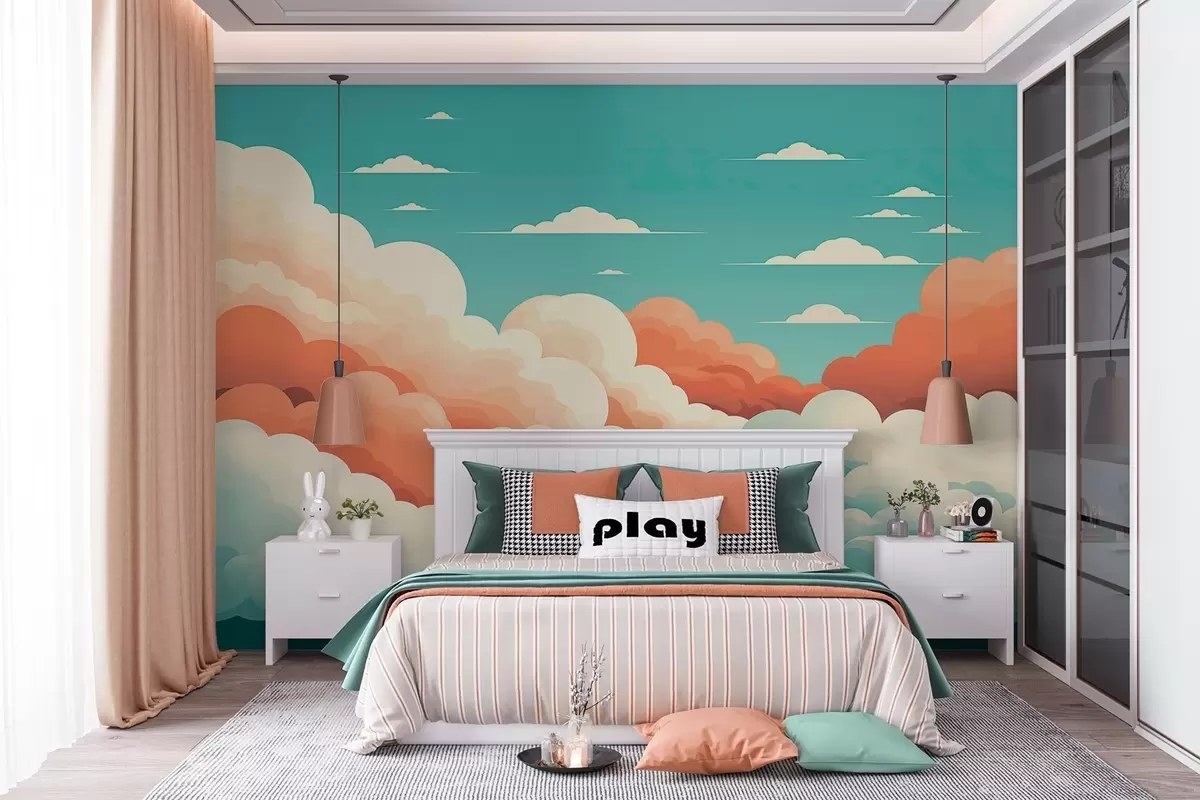 Тапете за зид Хировити облаци у цртаном стилу под плавим небом бр. w09246