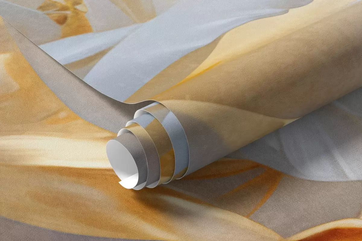 Тапете за зид Беле текстуриране руже са жутим стабљикама и листовима, меко осветљење, светла позадина са замућеним цветним облицима бр. w09258