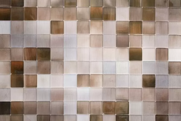 Тапете за зид Квадратне мозаичне камене плочице у нијансама браон, беж и беле са апстрактном жлебљеном зрнастом бучном текстуром бр. w09269