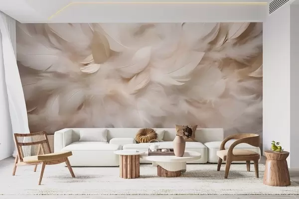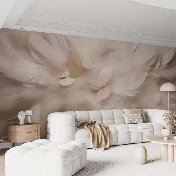 Тапете за зид Пахуљасто перје и паперје у кремастим нијансама бр. w09274
