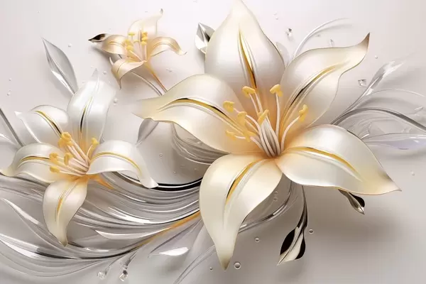 Тапете за зид Жути љиљани са 3Д ефектом на светлој позадини бр. w09278